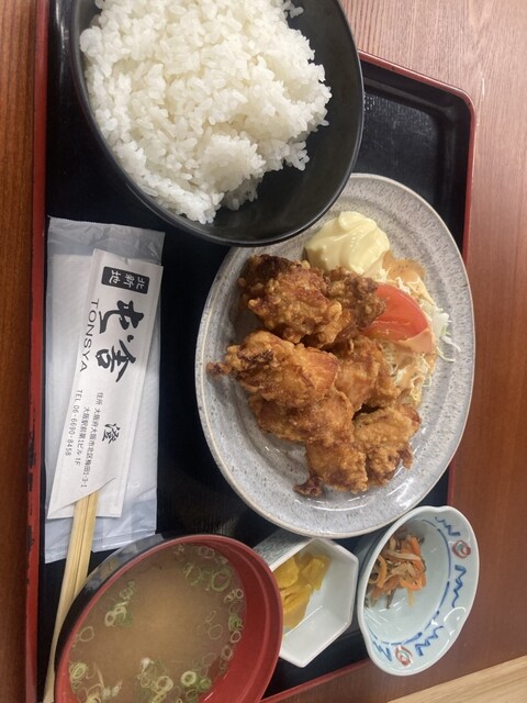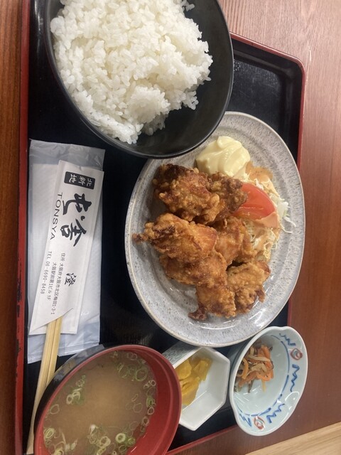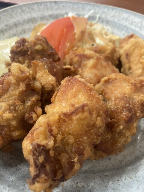 10分ほどで「唐揚げ定食」が運ばれてきました。大きめ...