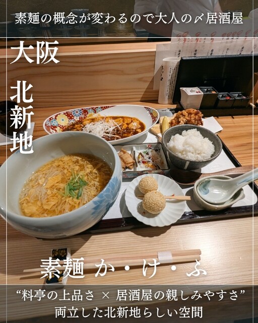まだ内装も新しい「素麺か・け・ふ」さんにて会食をしました。 入り口近くにはテーブル席。 長いL字カウンターがとても印象的です。 お酒はこちら ◾️アサヒスーパードライ生680円 ◾️角瓶700円 ◾️グラスワイン1200円〜 ◾️スパークリングワイン12... 詳細を見る