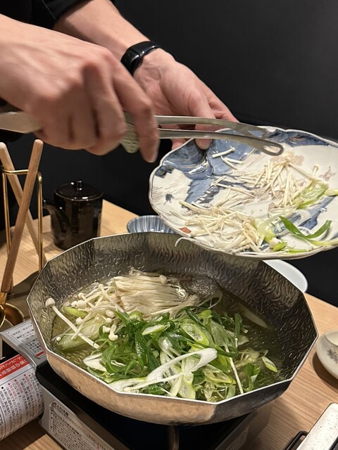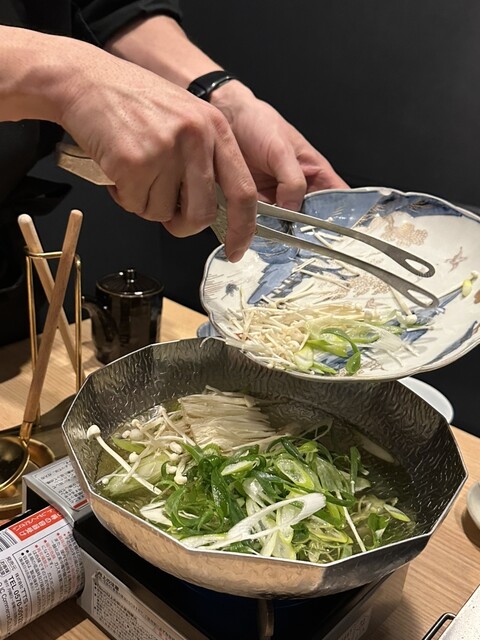 黄金出汁で食べる、九条ネギと東京Xのしゃぶしゃぶは優しい旨みが身体に染みる名脇役的存在!
