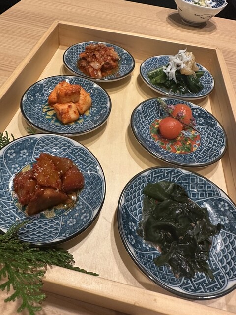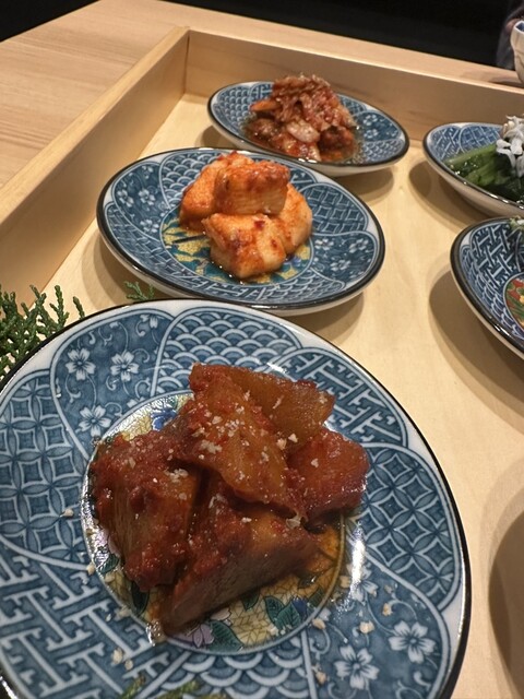 厳選和牛の肉寿司、自家製キムチや総菜盛り合わせで口を整えつつ、