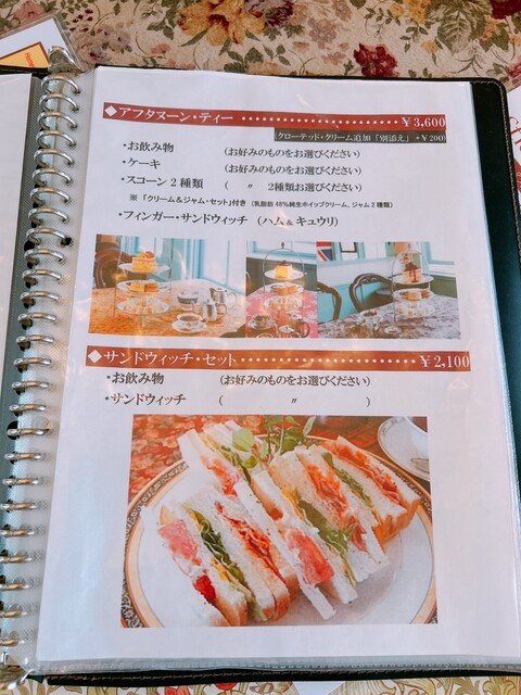 メニュー表(アフタヌーンティー、サンドウィッチセット)