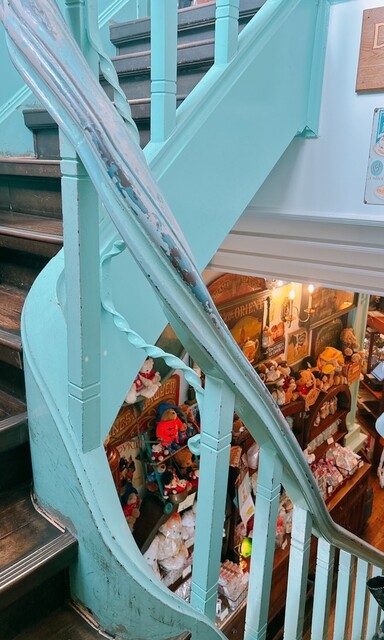 カフェスペースは螺旋階段をのぼった2階にあります。