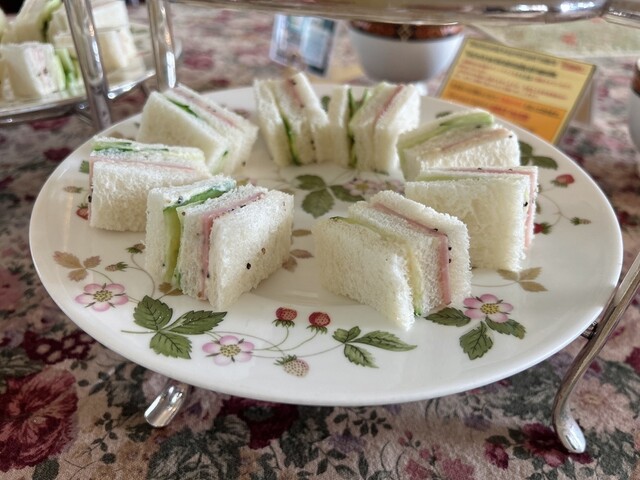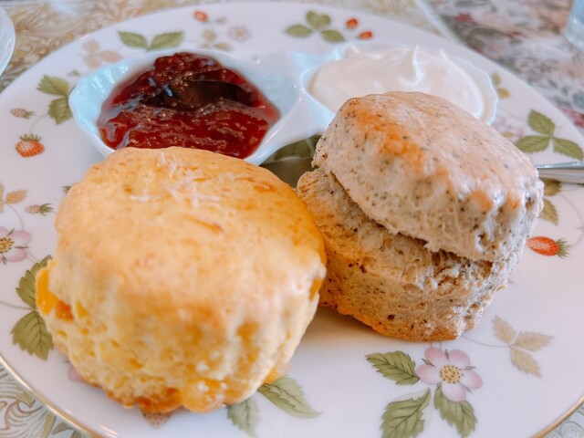 飲み物、ケーキ、スコーン、フィンガーフードがセットになっており、フィンガーフード以外は選べます♡