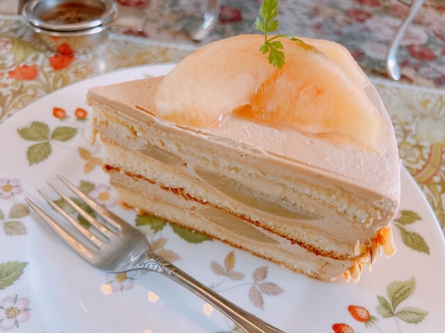 →どのケーキにしようか迷いまくりましたが、季節の果実が桃と知り即決! 桃とアールグレイの組み合わせ、美味しかったです♪
