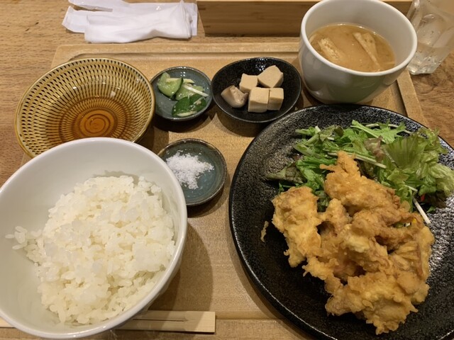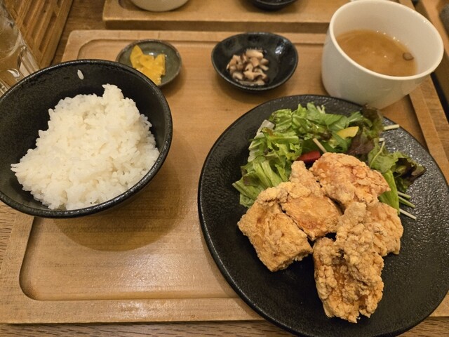 何にしようか迷って迷って、同僚と二人して唐揚げ定食をオーダー。