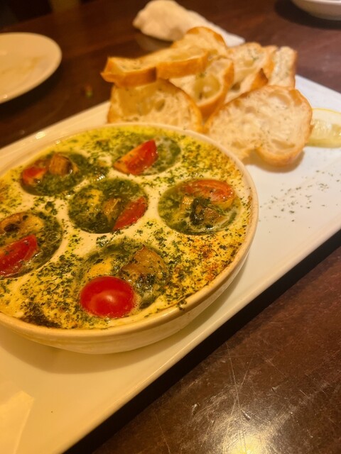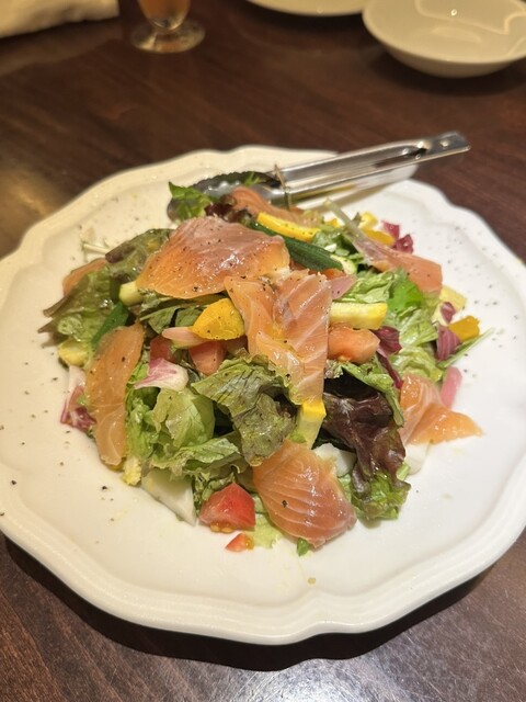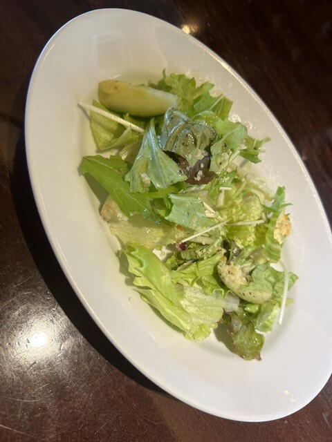 まずはサラダ。レタスの端がピンと立ち、ドレッシングが光をまとっている。酸味が柔らかく、食欲をほどよく刺激する。続いてバゲット。ナイフを入れると外はパリッ、中はしっとり。香ばしい粉の香りが鼻をく...