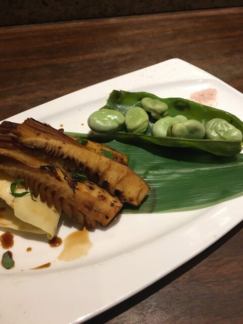 そら豆とたけのこの炭火焼き (by お店)
