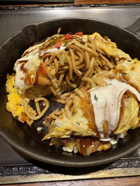 淀屋橋のビルの中、土日は出勤するサラリーマンもおらず、静けさが漂います。平日は行ったことないですが、おそらく土日の方がおすすめ。お好み焼きをはじめ、様々な鉄板焼きを楽しめます。 なんでも鉄板に乗せて保温してくれるので、冷めることなく温かい料理を楽しめます。 詳細を見る