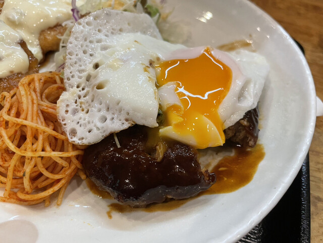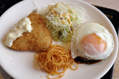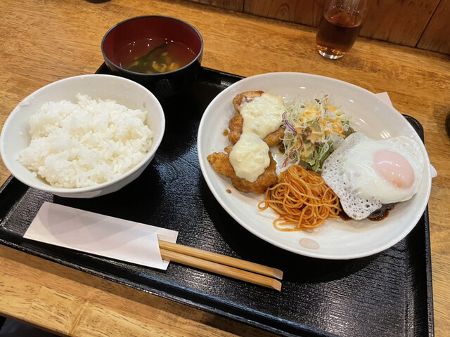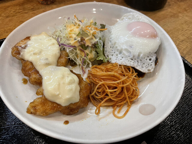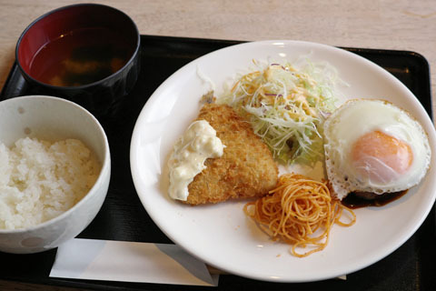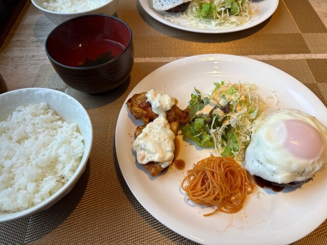◆自家製ハンバーグ+唐揚げorチキン南蛮orアジフライ(750円)