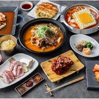 テーブルで2種類のサムギョプサル(6mm・20mm)を焼きながら石焼ビビンパやプデチゲなどいろんな1品料理が23種類も食べられる贅沢な食べ放題コースです。 表記は食べ飲み放題価格です。食べ放題のみは4000円 120分制(ラストオーダーは開始から90分) ※小学生以下は半額・未就学児は無料です。