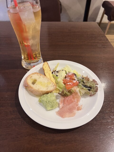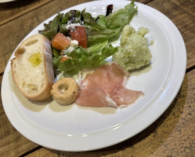 小ぶりの前菜盛り(かなり美味しい)がすぐに出て食べてる間にピザが...