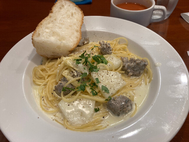 パスタランチが人気のお店。 並んでいることも多く、なかなか入ることができなかったお店です。 パスタランチは二種。 日替わり 鶏ミンチと白菜の柚子胡椒風味と限定10食パスタ... 詳細を見る