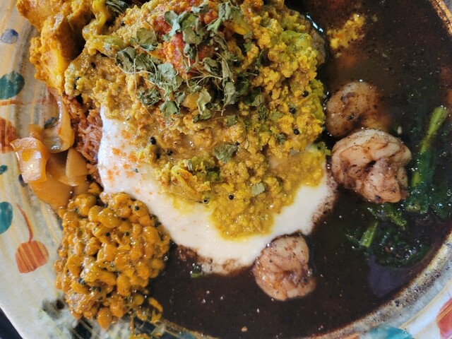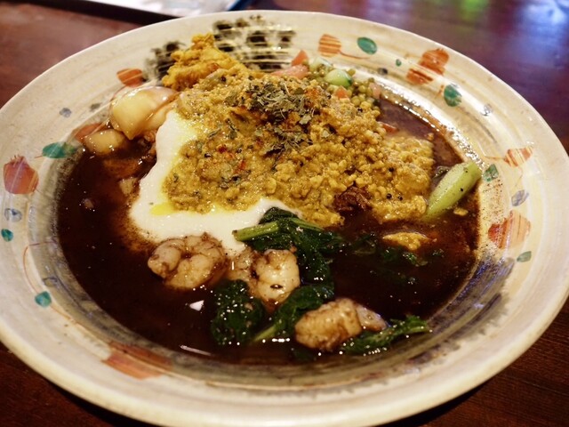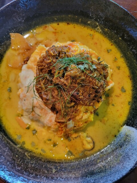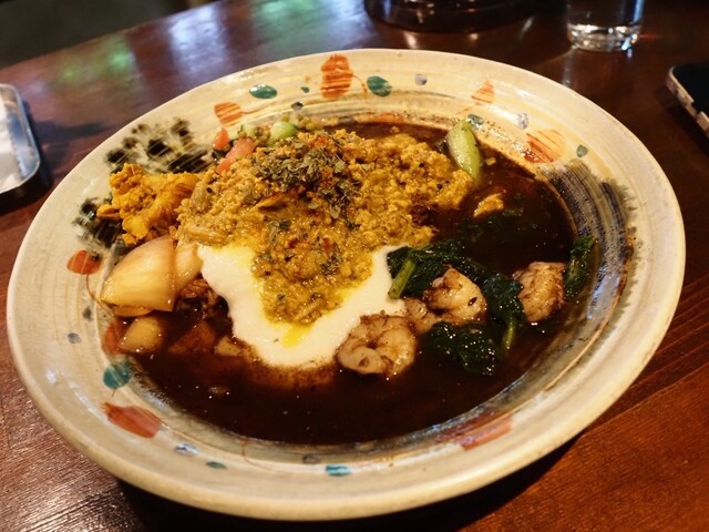 「あきらカレー」さんへ @akira_curry カレー百名店にも選ばれたスパイス炒飯と出汁カレーのお店 夜はスパイス酒場として営業 今日は軽飲みで✨ ハイボールで乾杯〜 今日のオーダーはこちら♂️ ✅生エビスパイス醤油オイル和え デカめの生エビが甘くてスパイスが良いアクセント ✅カツオのなめろう 香味野菜のアチャール 香味野菜の漬物とカツオが合体 最近カツオにハマっ... 詳細を見る