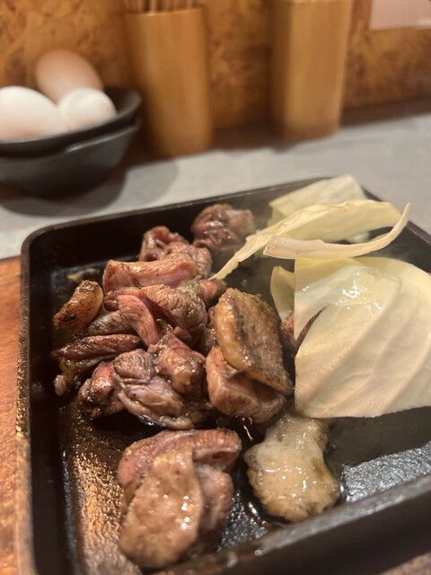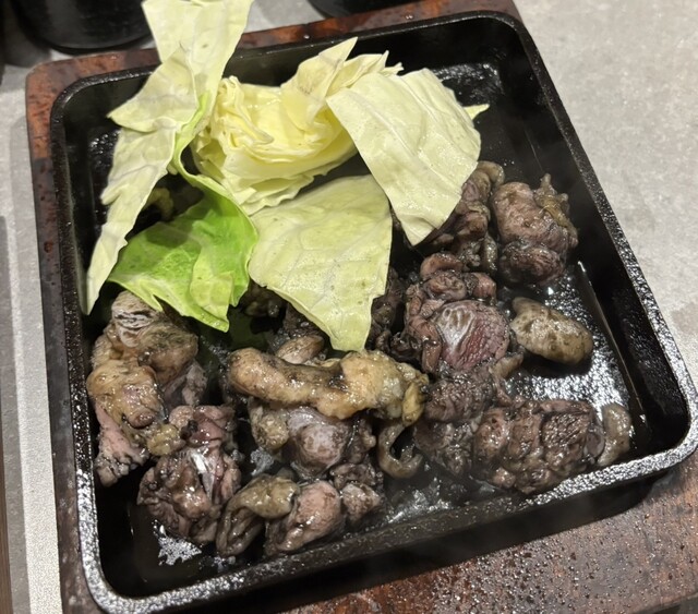ももの炭火焼き、せせりねぎ塩鉄板焼き、鶏ハラミのにんにく醤油炒め、親子とじ、若鶏唐揚げ。