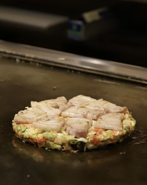 カウンター前面に大きな鉄板があり、ライブ感を楽しめるカウンター席や、