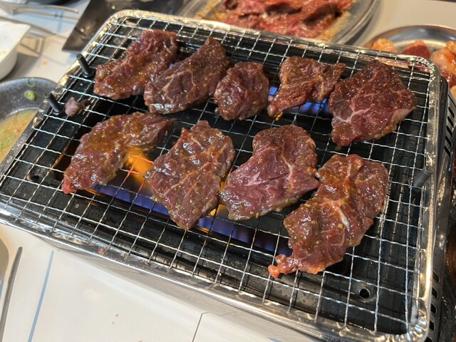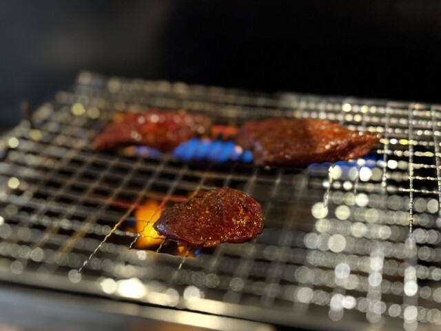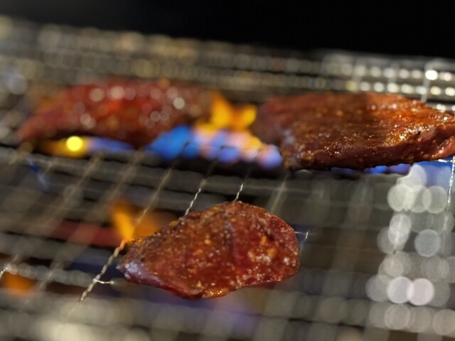 肉を焼いているシーン (by お店)
