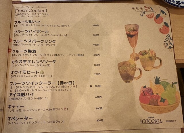 | ドリンク | カクテルあり、カクテルにこだわる |