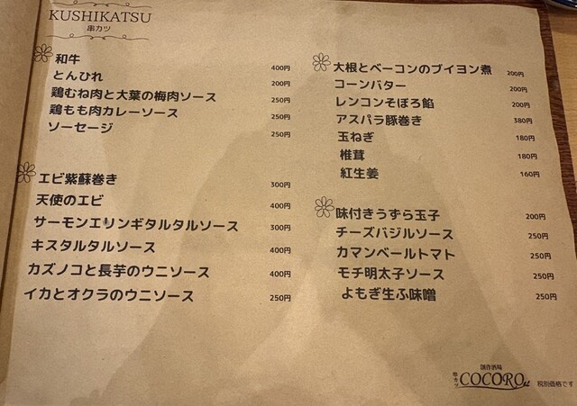 少し変わった串カツが食べたくcocoroさんをご訪問!
