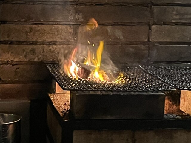 お肉が焼かれるのを見ながらグラスワインをもう一杯。