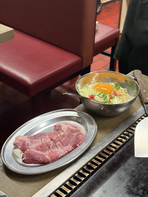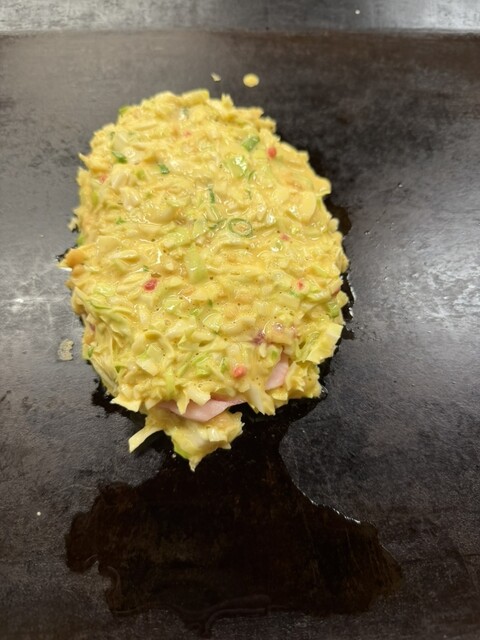 鉄板の上に生地ロース生地と焼くので...