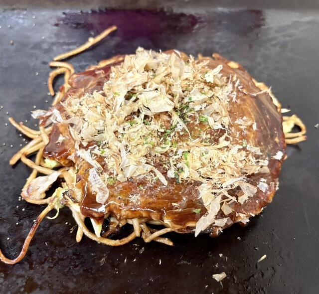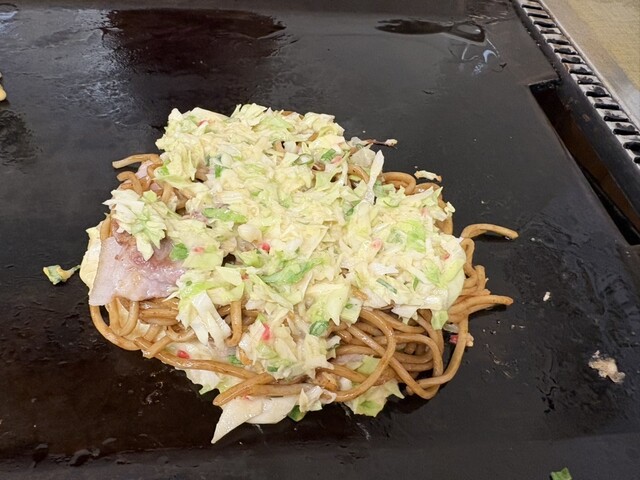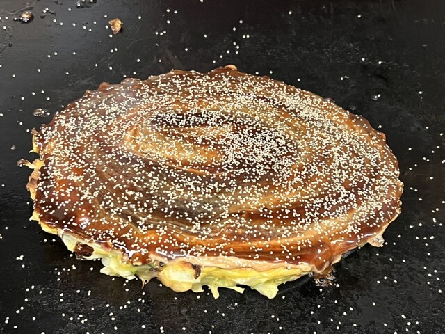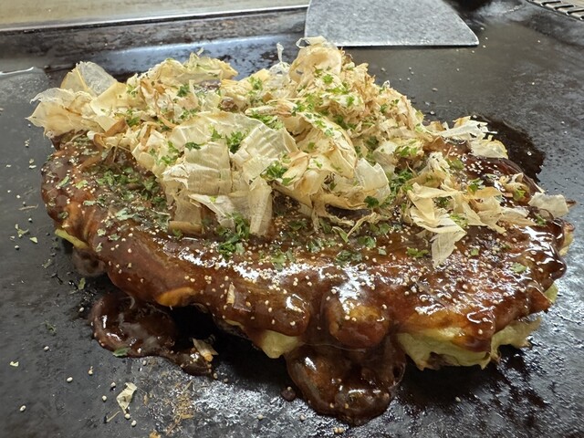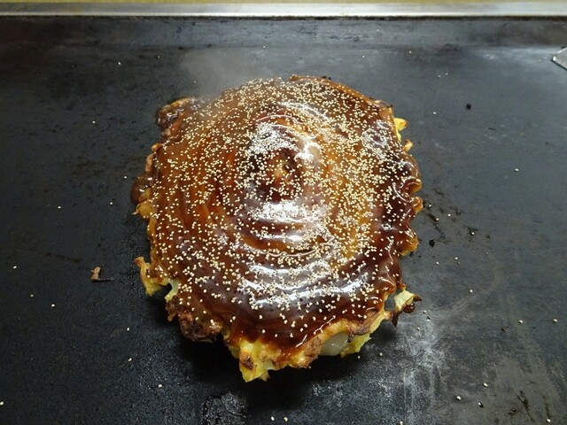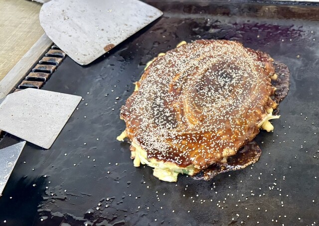 関西から帰る前、せっかくならお好み焼きと百名店のお店に来ました。祝日でしたが16時と中途半端な時間でしたので並ばず入店。カウンターは無くテーブル席へ。看板メニューの千草焼きとちゃんぽん焼きそばを注文。...