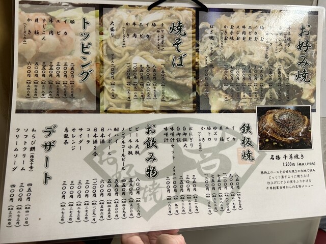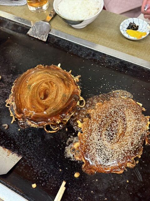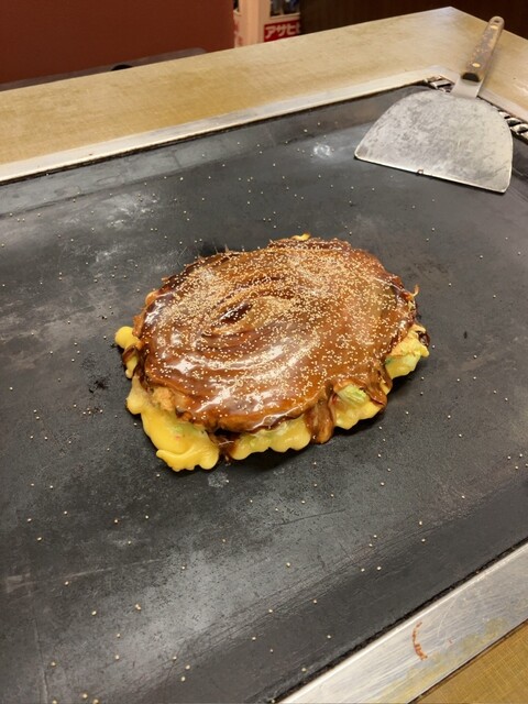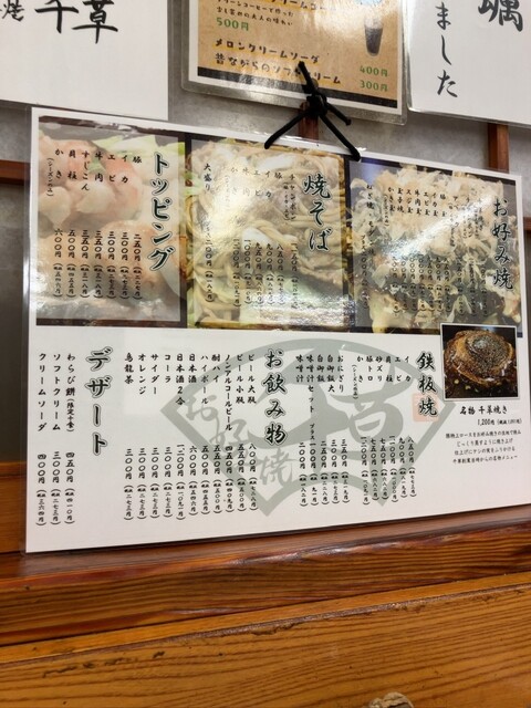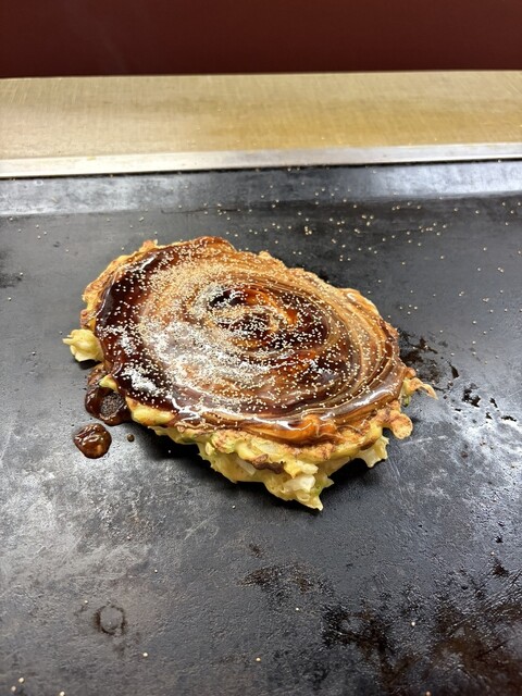 千草焼き美味かった。中に入れてる豚肩肉がうまかった。お肉と生地の焼き具合も最高。お好みソースも濃厚でいい。焼きそばソースもいいし、また、リピート確実。ただ、若い男の子の態度だけ少しイラッとしたwデザー...