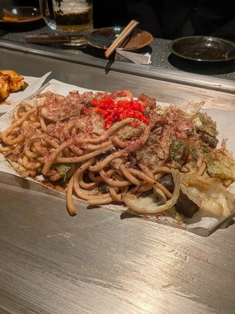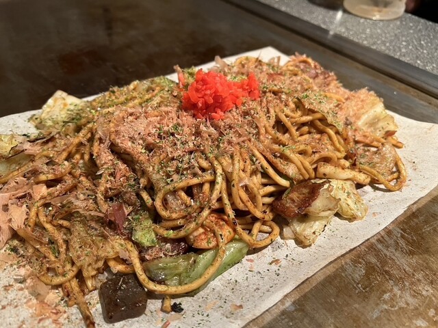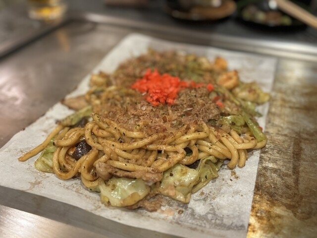 醤油レモンソースのネギ焼きが絶品でした。見た目はシンプル、でも中には牛すじとネギがたっぷり。イカ玉の中にはイカやゲソがゴロゴロ。オムそばには甘い小麦の味がする太目のそばが。このそばは卵と良く合います。...