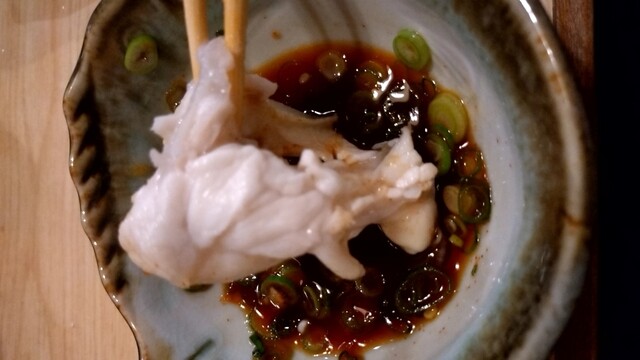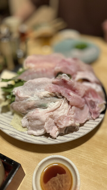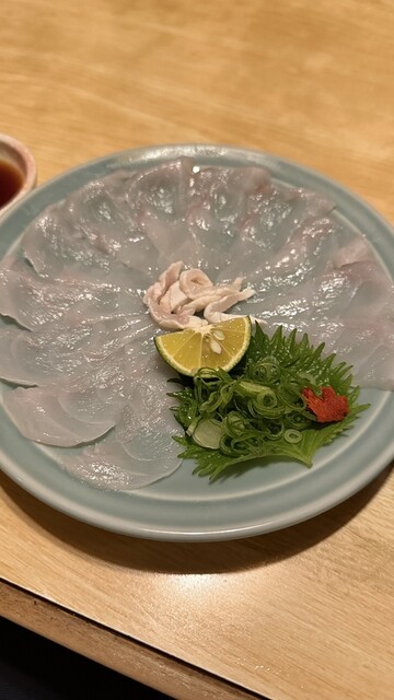 事前に予約しててっちりのコースを注文(4,980円) そこから飲み放題をつけ、単品で、ふぐぶつ、ハモ落としなどなど、単品も沢山頼んでしまいました。 どれもこれも美味しくて、てっちり用のポン酢もお店特製みたいで、酸味が強めで非常にさっぱりといただきました。(ポン酢は持ち帰り分も購入) 飲み放題もヒレ酒付きで、夏場はヒレ酒の冷酒もあるとの事で初体験。 飲みやすくて、何杯もおかわりしてしまいまし... 詳細を見る