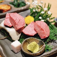 吟味屋では高級料亭や割烹店を思わせる落ち着いた『和』の雰囲気の中、全国各地から厳選された最高級の黒毛和牛一頭買いを炭火で味わって頂き、肉本来のまろやかさ・深み・コクを楽しんでいただきます様にすべてにおいてこだわっております。 舌の上でサシがとろける幸せを体中で味わってください。