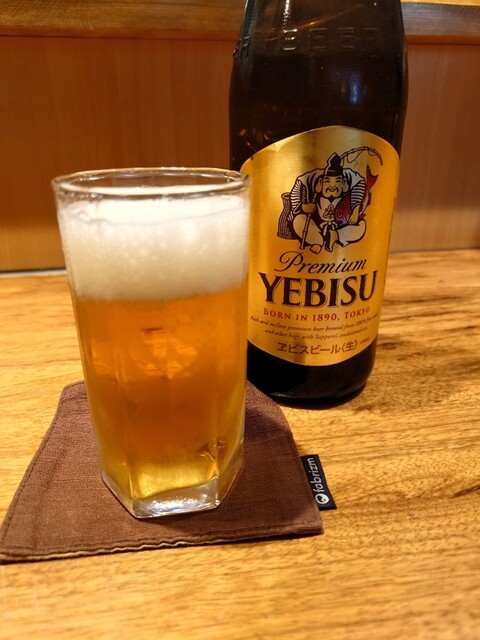 とりあえず瓶ビール(ヱビス中)で喉を潤して待ちます