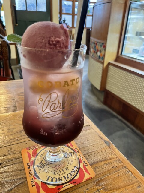 9月限定のぶどうのクリームソーダを注文。バニラアイスが苦手なので喫茶店であるようなクリームソーダを苦手ですが、こちらはぶどうのシャーベットを使って...