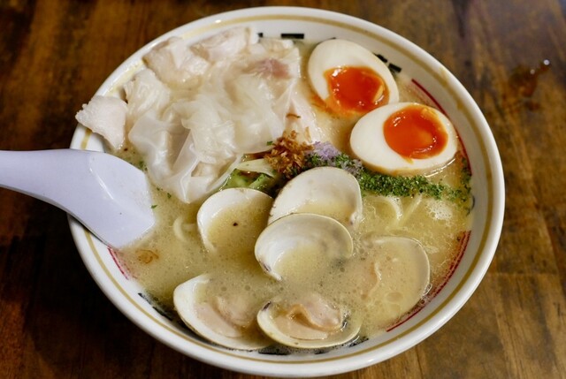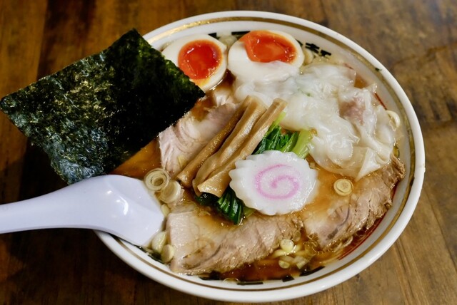 2件飲み終わりに彷徨う知らない街の22時頃「ストライク軒」が降臨笑。友達2人でふらっと入れたのがラッキー! 3軒目だけど「ワンタンメン+味玉トッピング」。 正直、〆にいって... 詳細を見る