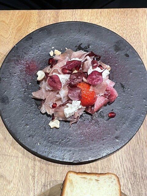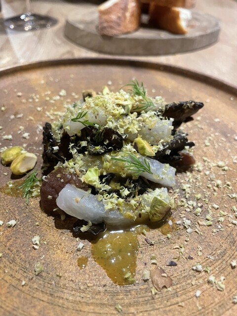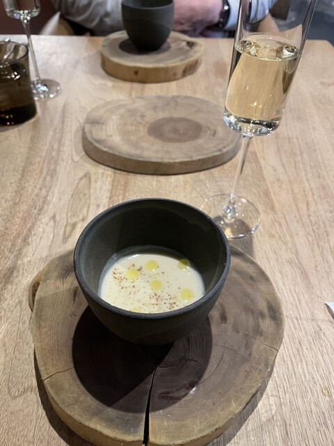 この日は友人らとの忘年会。以前訪問してとても好印象だったこちらのお店を再び予約してくれていました。コースではなくアラカルトでいただきます。まずはヒューガルデンで乾杯♪ 料理は下記の通り注文しました。 ・パン 自家製パンの盛り合わせ ・スープ 本日のスープ ・前菜 熟成鰤と黒大根... 詳細を見る