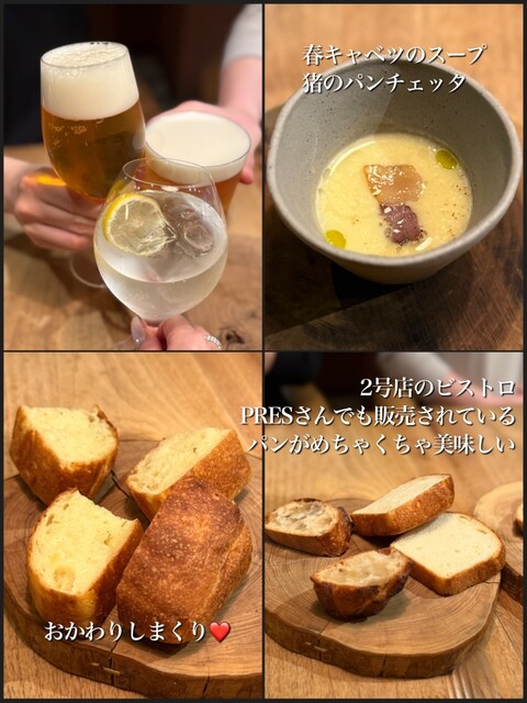 パンも自家製で毎日数種類を焼き上げ、カジュアルにフレンチのお料理とワインやビールをお楽しみください。ナチュールワインやこだわりビールも豊富にご用意いたしております。