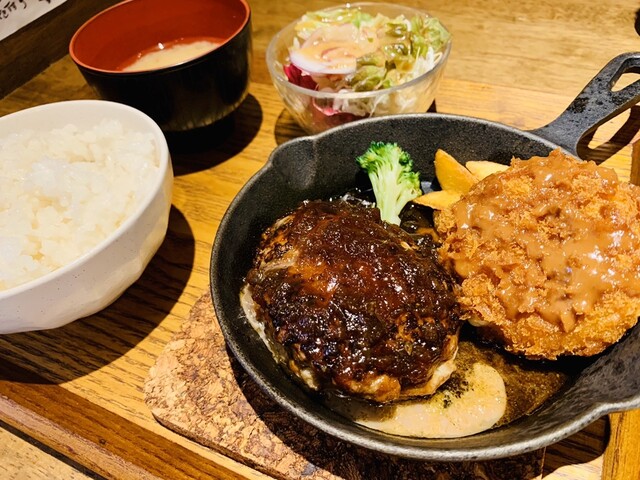 肉汁あふれる黄金比率ハンバーグは一度食べたらやみつきに♪絶品リンゴとオニオンの和風ソースでどうぞ。豊富なハンバーグや一品メニューは勿論、各種ドリンクも豊富に取り揃えております。