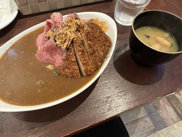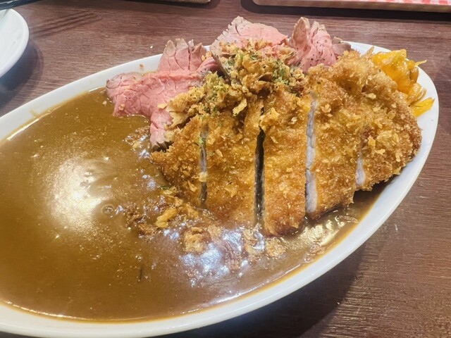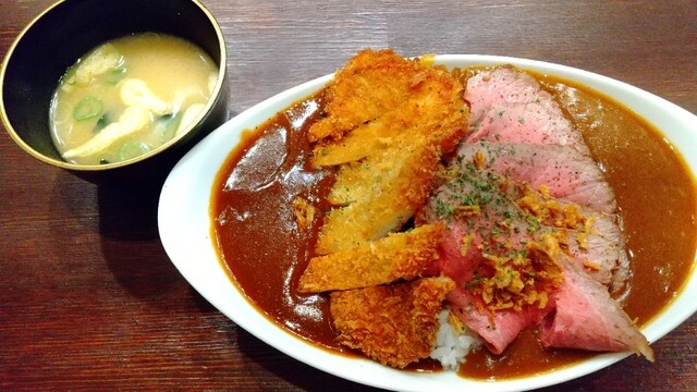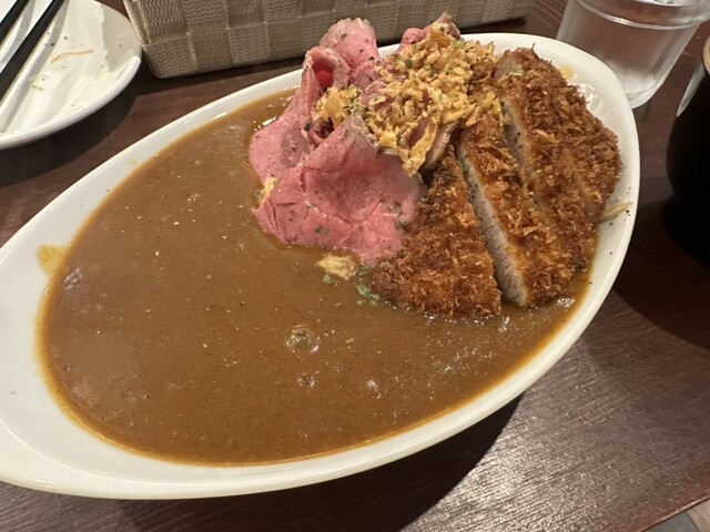 カレーとハヤシライス、カツとローストビーフを一度に楽しめるランチが あると聞きダイニングひら山さんへ。 珍しいカレーとハヤシの合いがけ、 さらにトッピングには揚げたてカツ... 詳細を見る