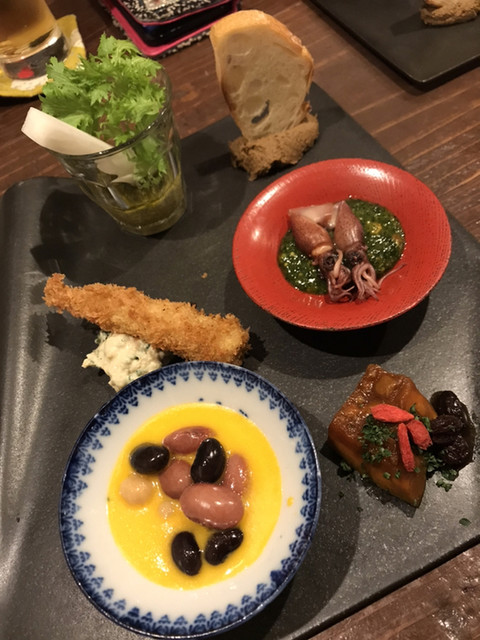 昨年、お友だちに教えてもらっておじゃまして、今回が3度目。。。 1回目は好きなものを、2回目はコースで、今回も好きなものをいろいろ!! 西天満公園の近く、ビルの奥にある、知らないと通り過ぎてしまいそうなお店デス 薬膳料理と、おいしい珍しい日本酒、お酒を飲めなくても安心、薬膳茶もいろいろあります☆ ・ソラマメ薬膳プレート その日のおすすめ薬膳が5種類、何がでてくるかワクワク... 続きを読む»
