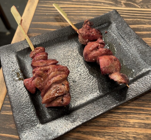 さっそくカンカンと、ここのウリの白レバーやこころ、せせりを塩で注文。