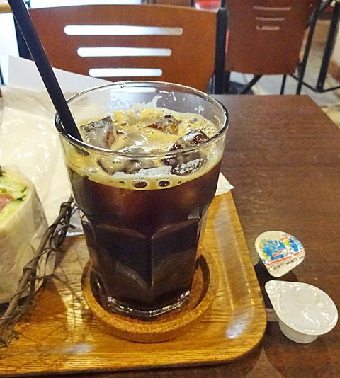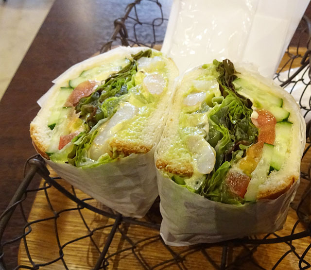 「エビとアボカドのサラダサンド(ハーフ)」(650円)と「アイスコーヒー(M)」(400円)にしました。