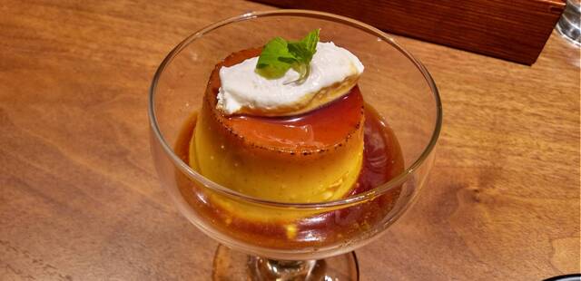硬めのプリンで、しっかりした味とソースでおいしいプリンでした。