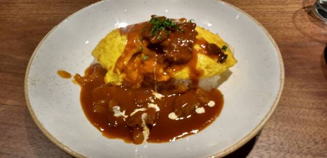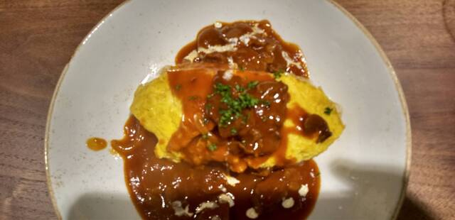 黒毛和牛を使った濃厚なソースとふわふわ卵とバターライスのオムライス。