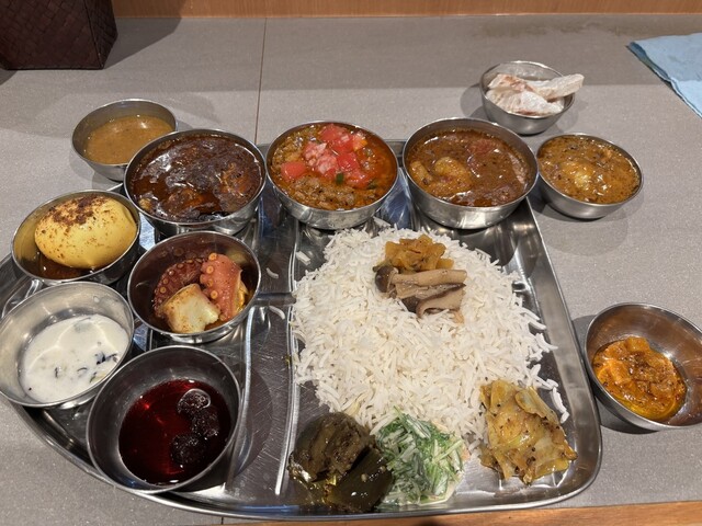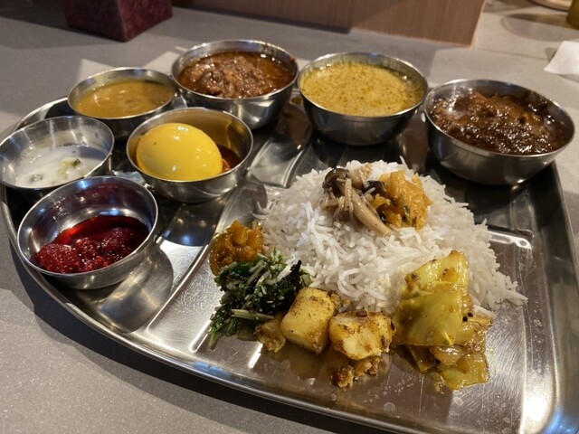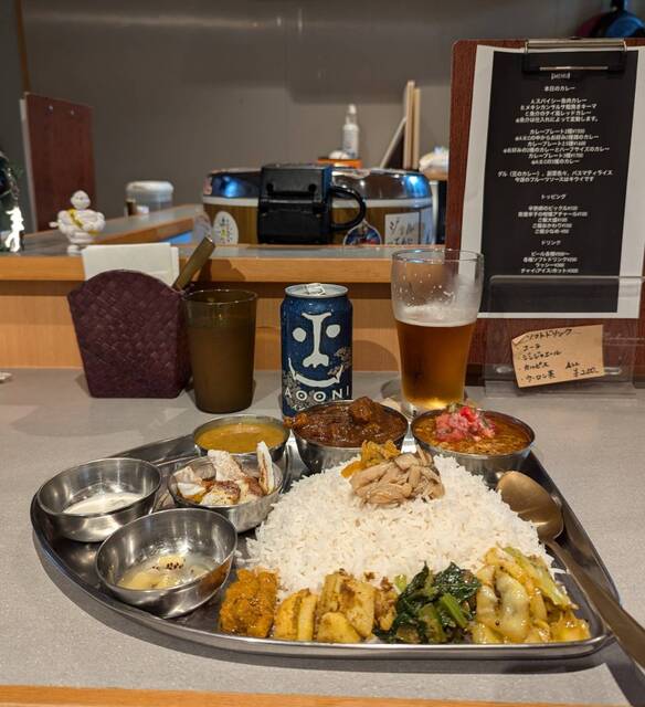 スパイスカレーで楽しいのが、数種類のカレーを混ぜて楽しむ「あいがけ」。 2~4種のあいがけが一般的ですが 「2.5種(好みの2種とハーフサイズ1種)」のあいがけカレーがあると聞き スパイスアンドカレー黄金の風さんへ。 毎週変わる個性派スパイスカレー3種、 さらにダル(豆のカレー)、... 詳細を見る