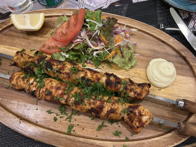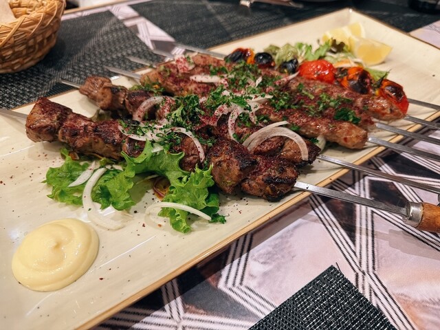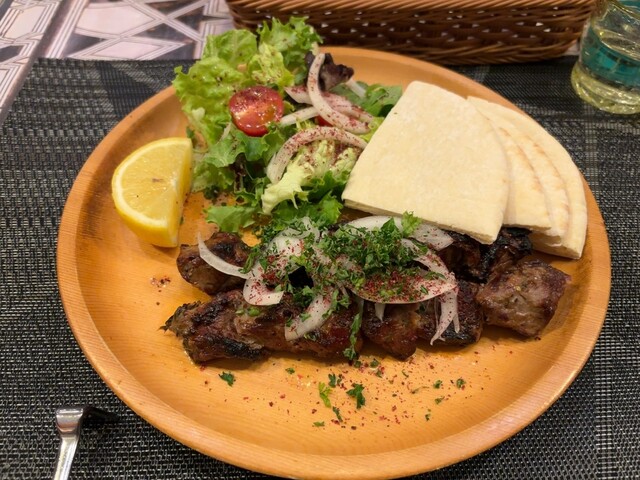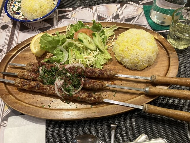 羊肉、鶏肉、野菜(ベジタリアン)のランチセットがあって私は羊肉の中からバーベキューを選びました。ケバブ(ひき肉)のバー...