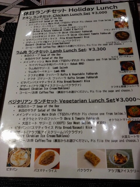 100% ハラルフードなのはもちろん、ベジタリアン・ヴィーガン・小麦不使用のメニューもございます。日本語、英語、アラビア語でサービスを提供します。 |
