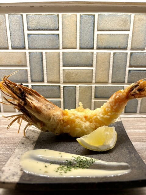 天満駅近くの海鮮料理と天ぷらをいただけるオシャレな居酒屋さん。店内は落ち着いた雰囲気でカウンター席とテーブル席。デートや少人数の会までと多くの場面で利用可でした。