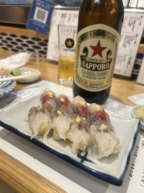 雨の金曜13:00 先客2名。 ちょうど谷間だったのか、空いてましたが 30分ほどで3、4組入って来てました。 他のレビュアーさんの投稿を見る限り 予約してないと入れないことも多そうなので 予約必須っぽいです! 店員さんはお若い方ばかりで華やか。 けど、若い店特有の雑な感じとかなく好印象♪ 天満の安旨寿司居酒屋がまた増えましたね! ◾️シブガキ隊もびっくりラインナップ... 詳細を見る
