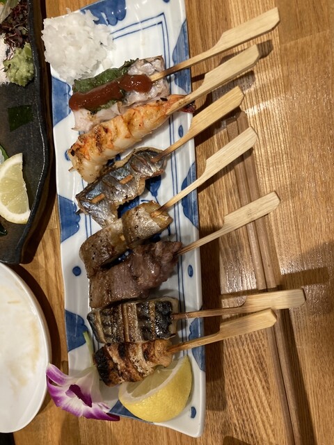 串焼きは魚介の種類も豊富で、それぞれの焼き加減が絶妙。