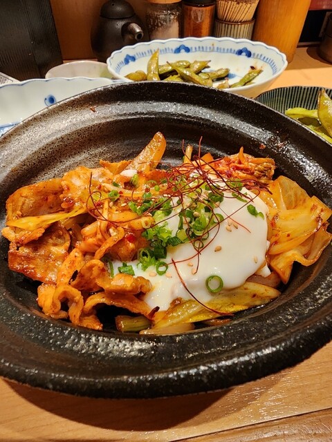 天満市場近くにあるくわ焼のお店。 【お通し】300円 ほんの少しの大根おろしとピリ辛な豆もやし。 【カリカリ醤油の冷奴】460円 キッコーマンの食べる醤油が乗った冷... 詳細を見る