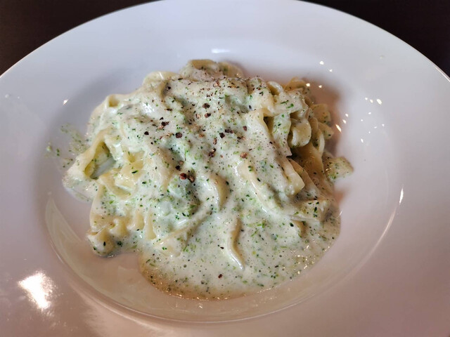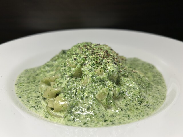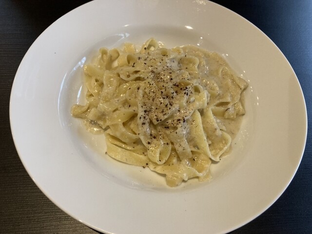 生パスタ「フェットチーネ」のために丁寧に作られたシェフ自慢の一皿。