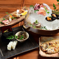 旬の鮮魚を使用した一品料理やお造り、揚げ物など軽い食事を楽しめる内容です。気軽な飲み会にもぴったりのコースです。〆には土鍋で炊き上げる鯛めしをどうぞ